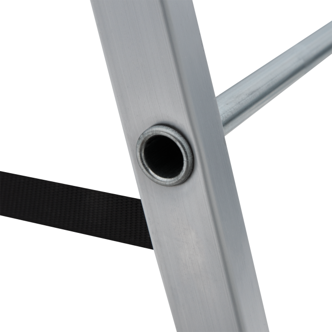 Усиленное крепление стоек заднего каркаса с развальцовкой. Повышает устойчивость стремянки.