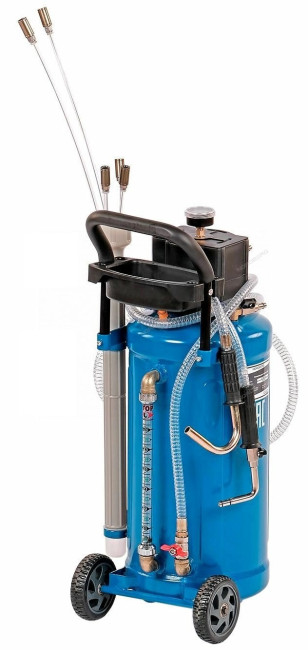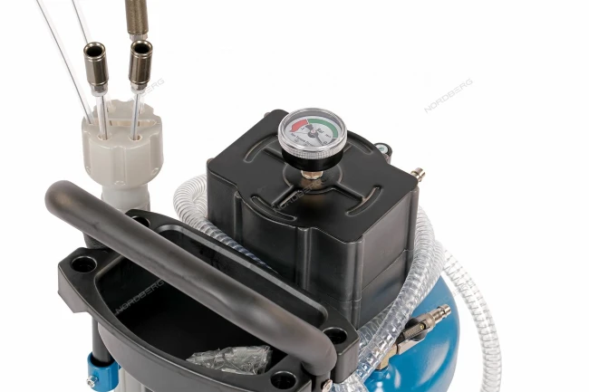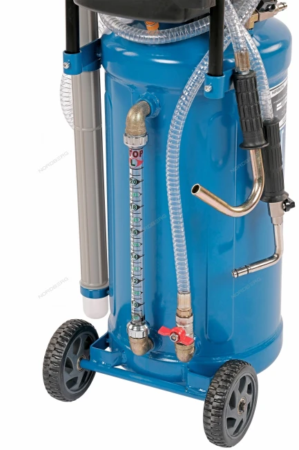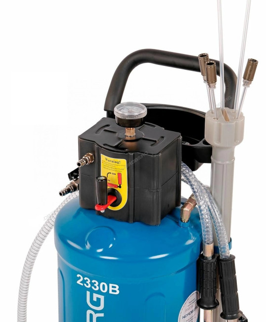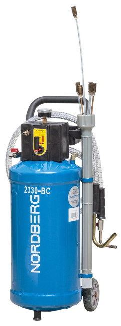 Компактная, маневренная и простая в эксплуатации установка для замены масла NORDBERG 2330-BC удаляет отработанное масло и другие жидкости из любого транспортного средства при помощи вентури-вакуумной вытяжной системы.