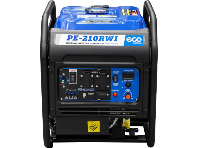 Инверторная сварочная электростанция ECO PE-210RWI предназначена для использования в качестве автономного источника ручной дуговой сварки или подключения электрооборудования. Бензиновая станция с функцией сварки представляет собой комбинированную электростанцию для сварки и энергоснабжения. Современный сварочный модуль позволяет выбрать силу тока в диапазоне от 20А до 210А. Электростанция оснащена двумя цифровыми дисплями с отображением: напряжения, частоты тока, счётчиком мото-часов и силы сварочного тока.