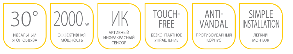включение электросушителя происходит автоматически, как только пользователь подносит руки на расстояние не более 20 см