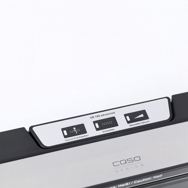 CASO VR 190 имеет три основных (самых популярных) режима работы: вакуумация и последующее автоматическое запаивание, только запаивание и ручной импульсный режим для регулирования силы откачивания воздуха, идеально подходящий для деликатных нежных продуктов.