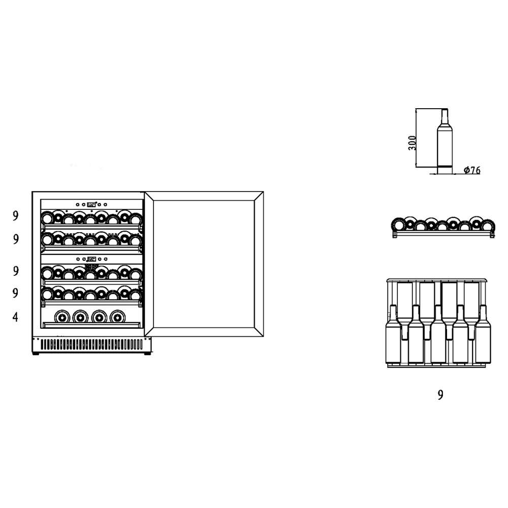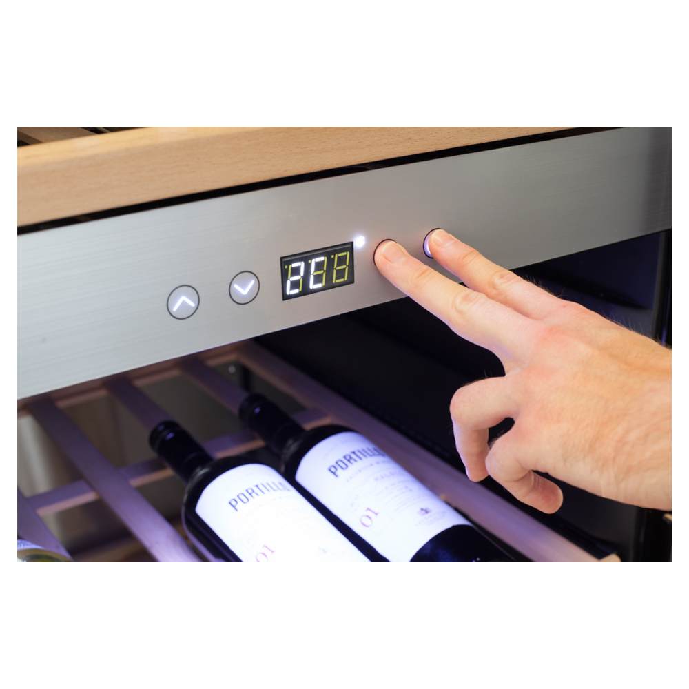 Одна дверь. Две зоны (для красного и белого вина) с индивидуальной установкой температуры