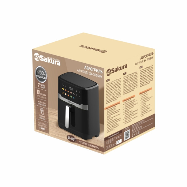 Аэрогриль, 1700 Вт, чаша с антипригарным покрытием 7,0 л, 10 программ приготовления, таймер со звуковым сигналом, регулировка температуры 80-200С, сенсорное управление, готовит без масла или с минимальным его использованием. Подходит для всех блюд, которые готовятся в духовке. Цвет черный. Длина шнура 80см. Размер устройства в упаковке: 386x321x341 мм.