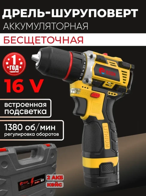 Дрель-шуруповерт аккумуляторная Edon Pro AD-16BL (с 2-мя АКБ, кейс)