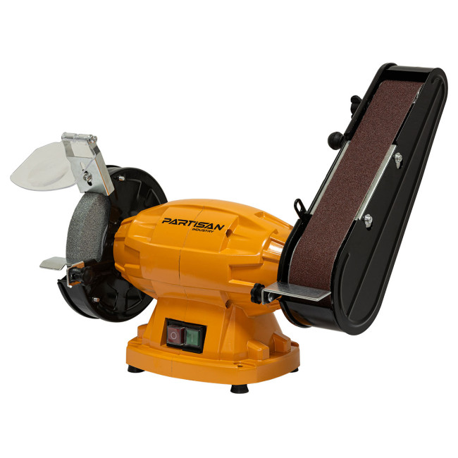 Станок точильный PARTISAN представляет собой устройство для грубой и чистовой шлифовки металла, дерева и других материалов с помощью наждачного круга/шлифовальной ленты, соответствующего спецификациям оборудования, приведенным в данном руководстве.