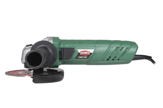 Углошлифовальная машина (болгарка) USM 710D отличается компактным, зауженным корпусом с рифлением. Осбенностью УШМ также является широкая кнопка пуска с плавным ходом, что существенно облегчает запуск и остановку вращения диска. Кожух стандарта 125 мм позволит использовать самый распространенный тип абразивной оснастки. Двухпозиционная дополнительная рукоятка дает возможность работатать как с правой, так и с левой руки вплотную к плоскости, а блокироовка шпинделя облегчает замену оснастки.