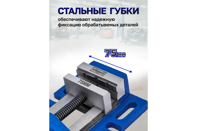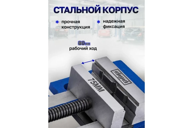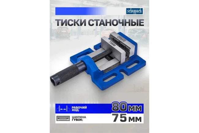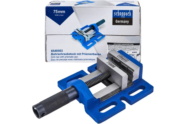 Станочные тиски от бренда Scheppach с шириной губок 75 мм и рабочим ходом 80 мм — это профессиональное решение для надежного зажима заготовок при обработке на сверлильных и фрезерных станках.