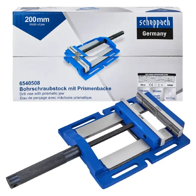 Профессиональные станочные тиски от Scheppach разработаны для надёжной фиксации заготовок при сверлении, фрезеровании и других видах механической обработки. Призматические губки обеспечивают удобную фиксацию круглых и сложных деталей, а глубина зажима 35 мм подходит для большинства задач в мастерской.