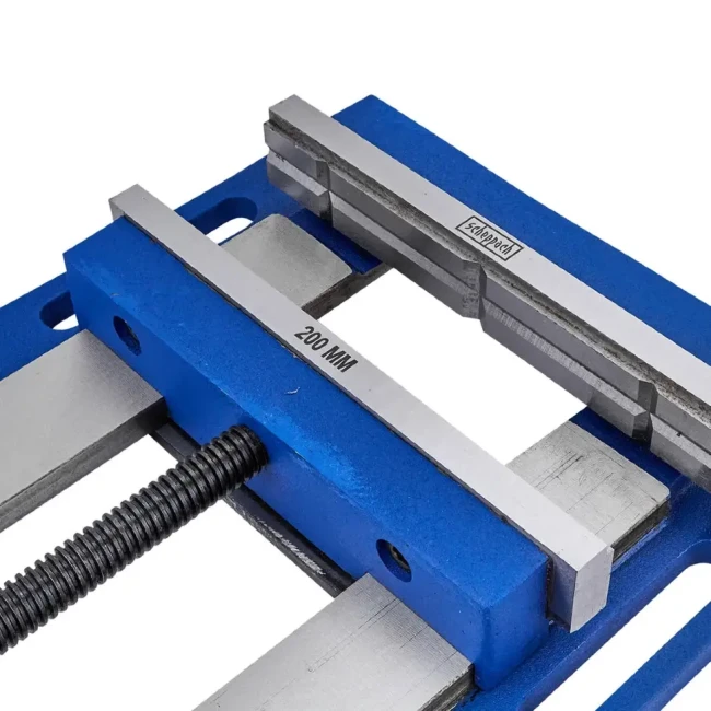 Ширина губок — 200 мм — позволяет зажимать крупные детали с высокой точностью.