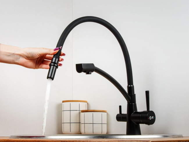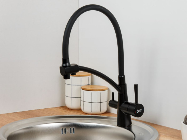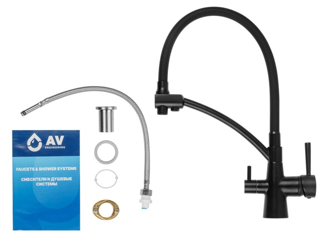 Смеситель для кухни с гибким изливом AV Engineering AVLUX4-A49BL (черный)