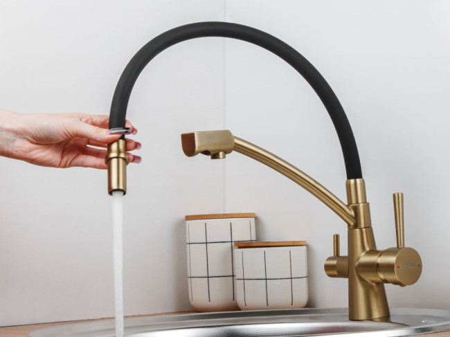 Смеситель для кухни с гибким изливом AV Engineering AVLUX4-A49GLB (золото)