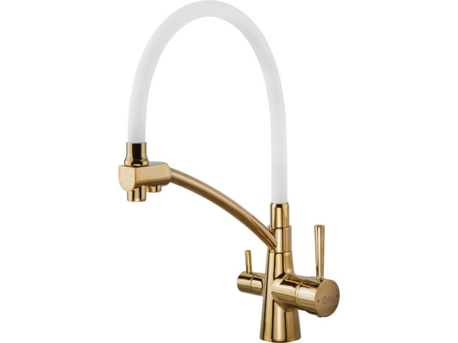 Смеситель для кухни с гибким изливом AV Engineering AVLUX4-A49GLW (золото/белый)